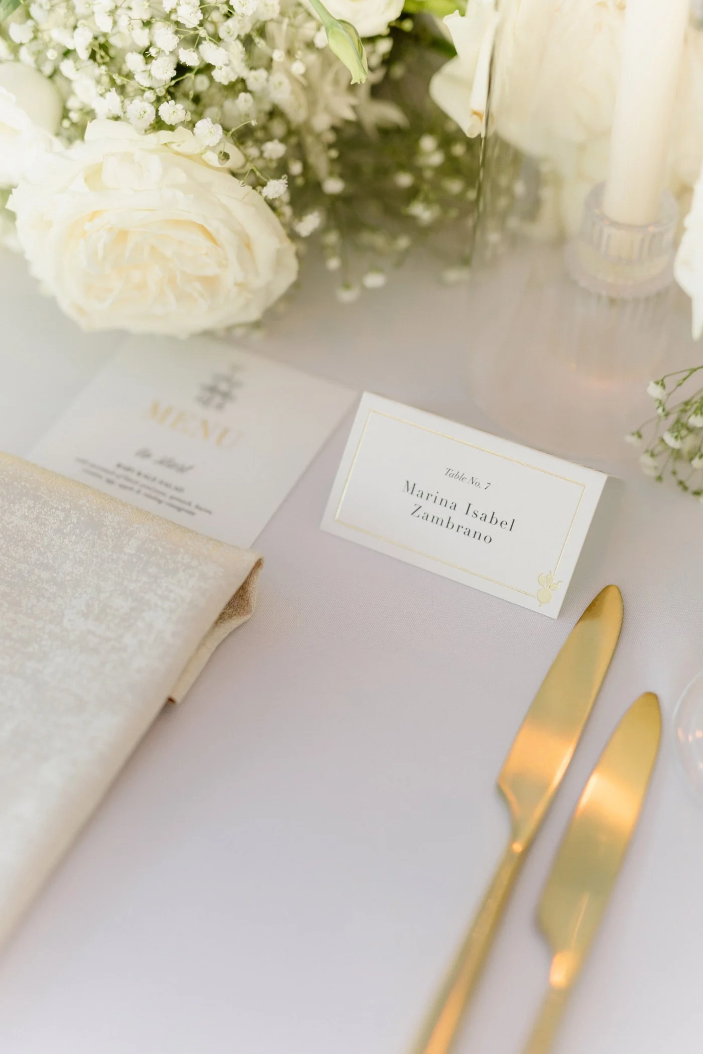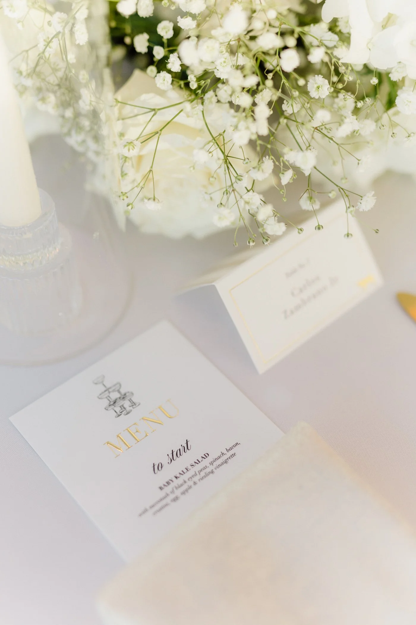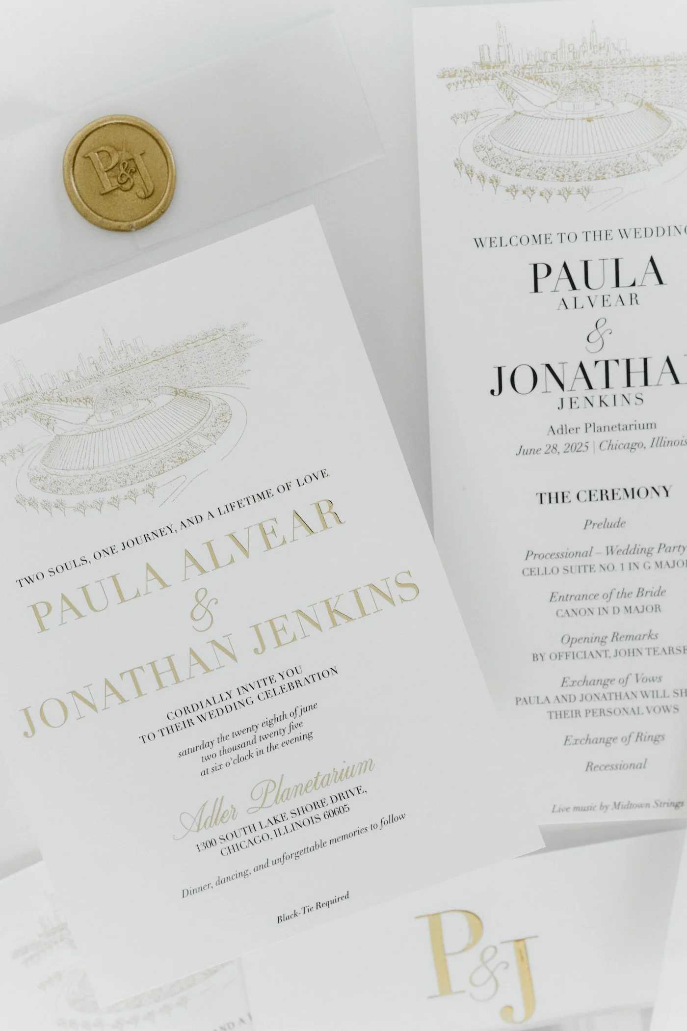 Together we brought a classic, luxe invitation suite to life. From the gold seal to shimmering champagne tags, this wedding radiated love and sparkles.